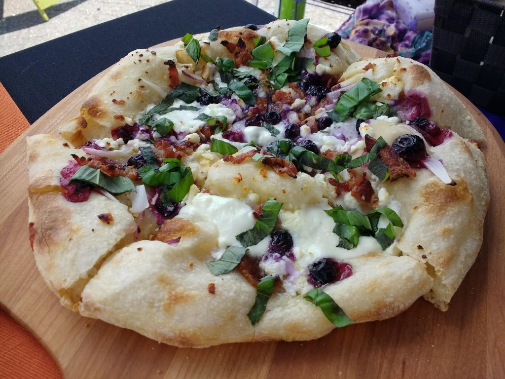 “B Happy Pie” with local blueberries, basil, and bacon from Trillium Farm