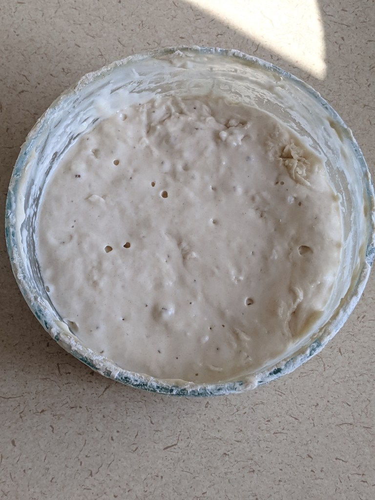 With the help of my mother, I fermented water and flour into a living dough. Goodness bubbled on my counter—uplifting and aromatic. When her countless progeny peaked in number, I added salt, more flour, and more water, separate ingredients that gathered into a whole as I kneaded rhythm into their lives—stretch, fold, push, turn. Threads of long gluten strands spun by hungry yeasts were knitted and woven together by the movements of my hands. The dough responded to my touch by rising in the bowl, then springing high and vibrant in the oven, exhaling their last, fermentatious breath as an offering to caramelize and leaven the pizza crust, releasing aromas that woke up dormant memories—my mom making rolls for thanksgiving, my grandma baking birthday cakes, the Christmas morning almond pastries my dad loved, and something much older and deeper: gratitude for food, for a delicious life.